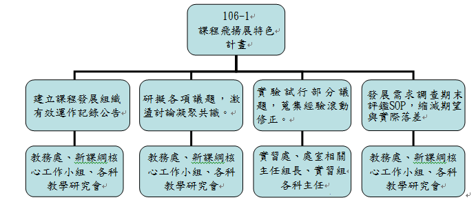 教務處、實習處、新課綱核心工作小組、各科教學研究會。