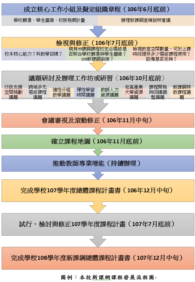 1. 擬定新課綱課程發展流程圖(如下圖)。