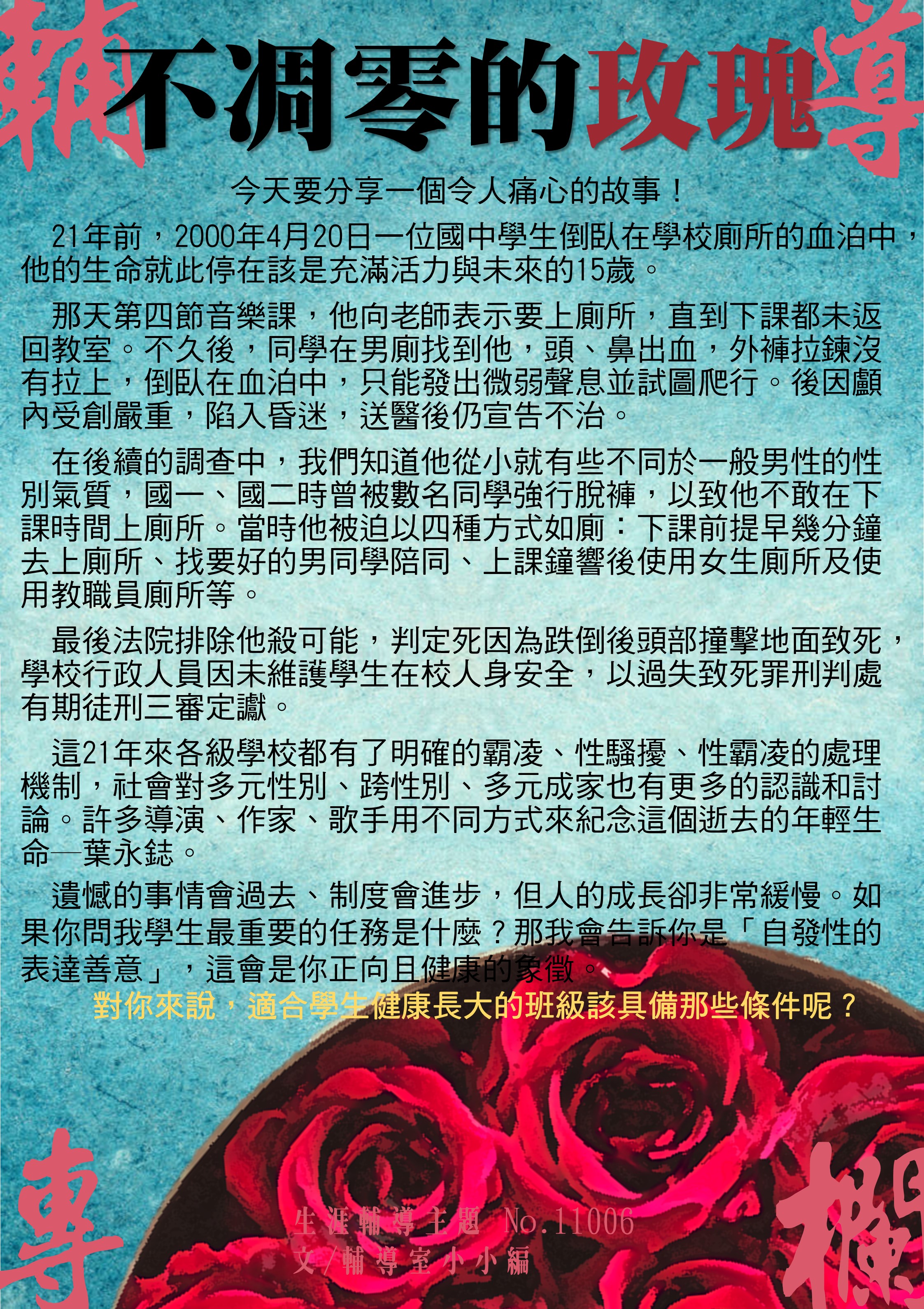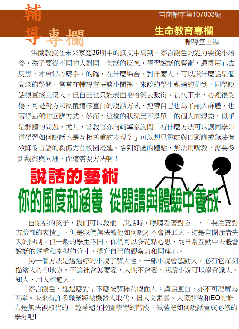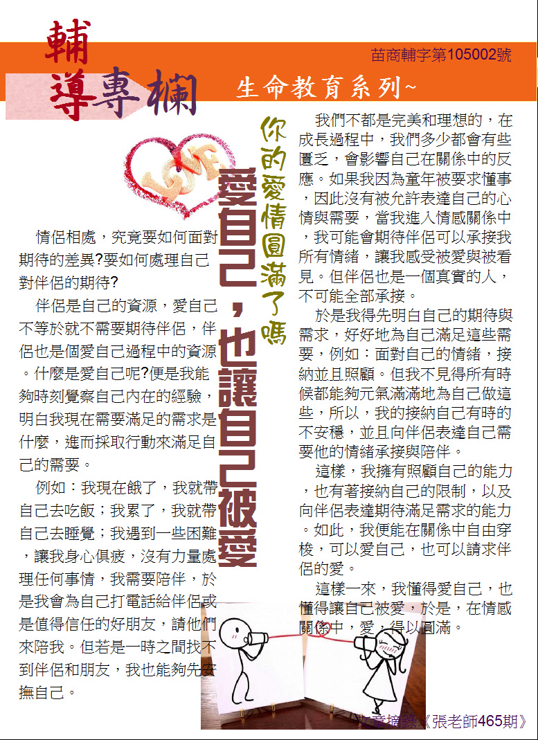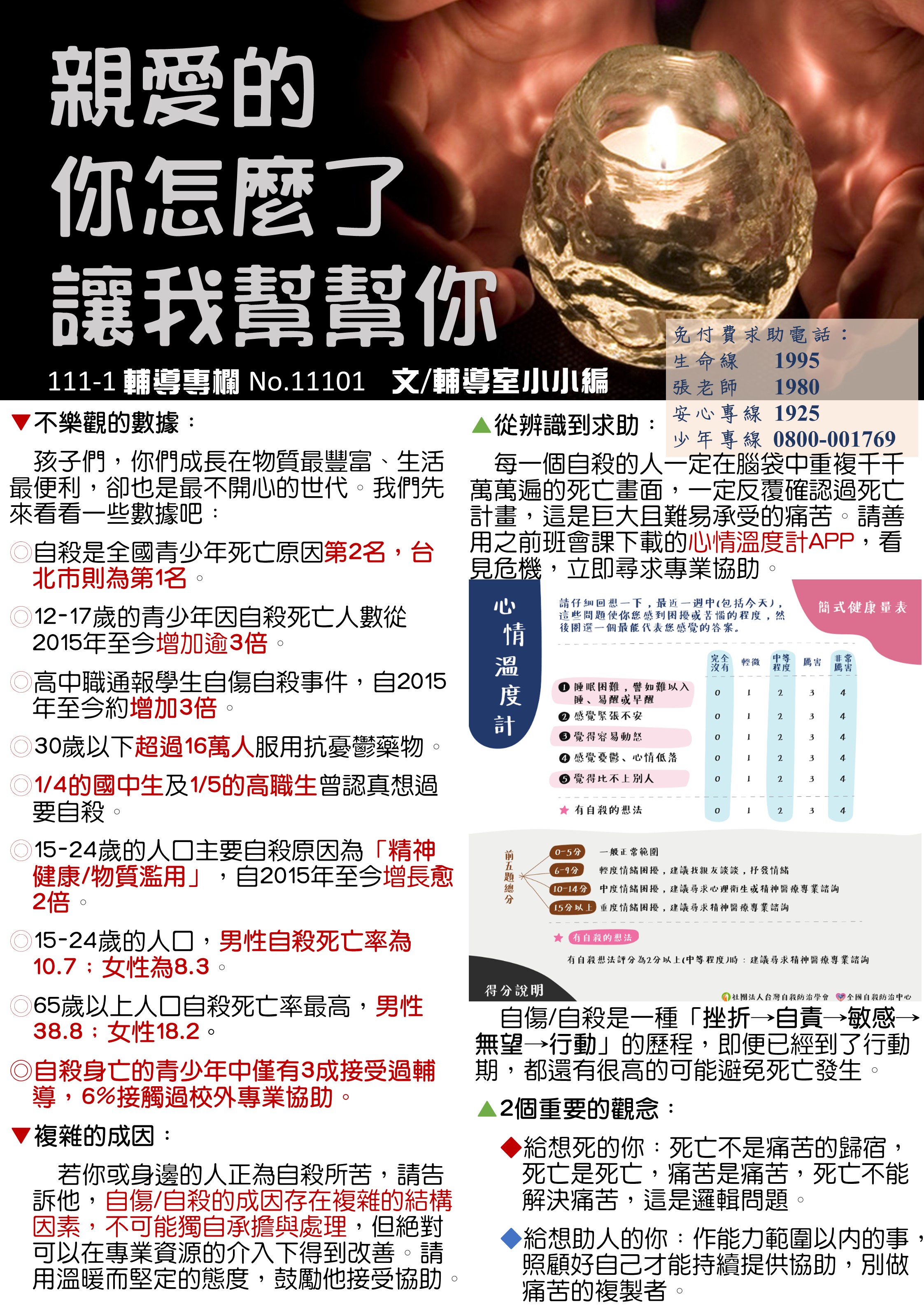 10月號生命教育主題─親愛的,你怎麼了!讓我幫幫你