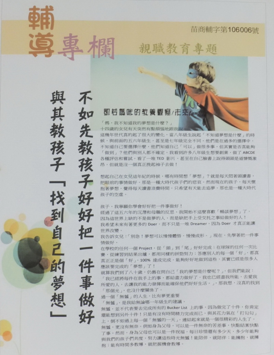 05月專欄 生命教育主題:孩子還好當初沒有放棄
