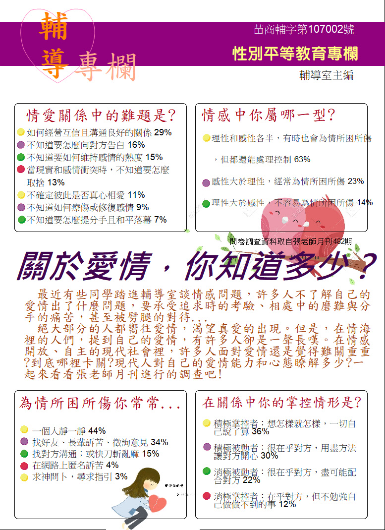 04月專欄 性別平等教育主題:「談情說愛」四個重要課題