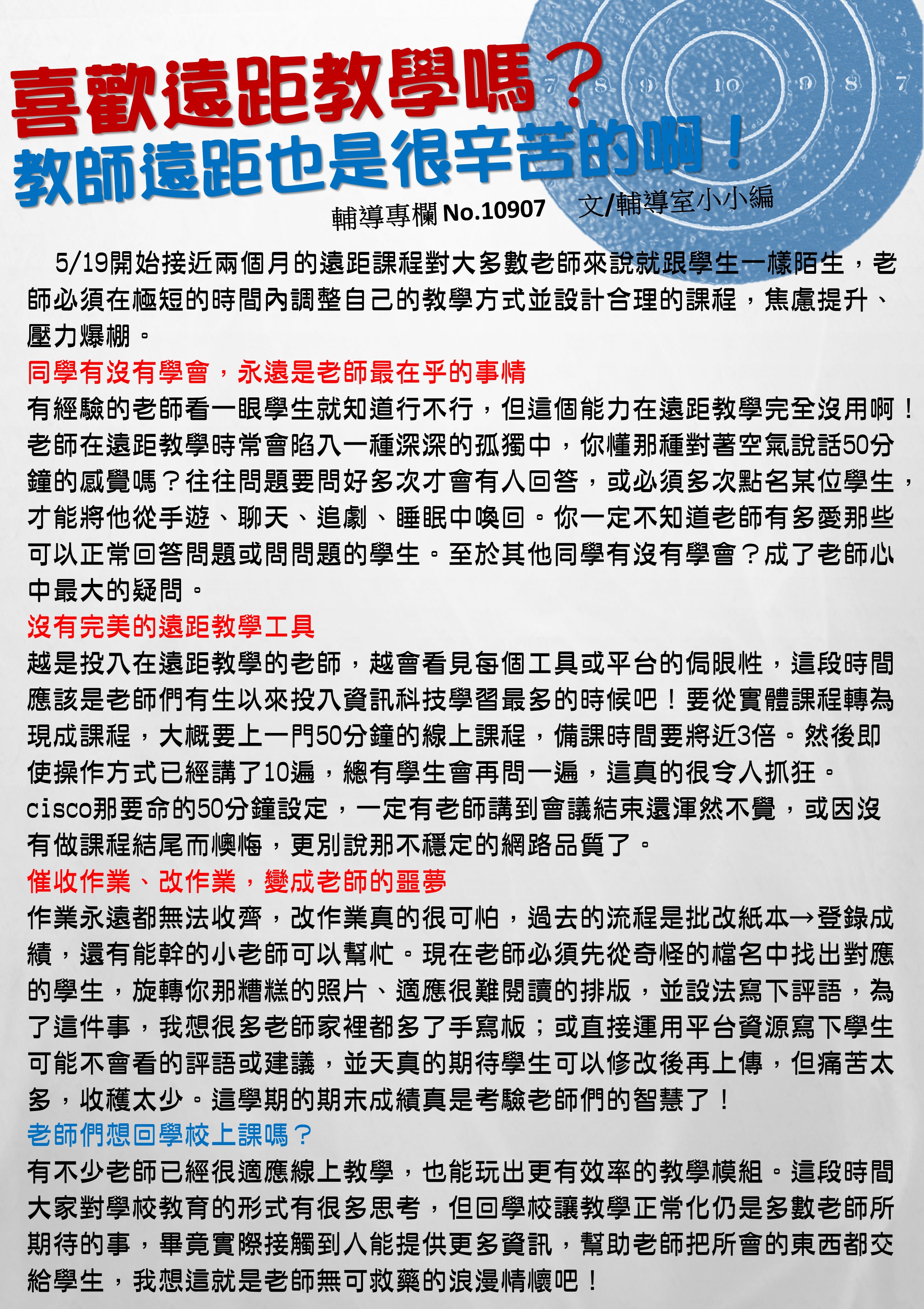 5月號 喜歡遠距教學嗎?老師遠距也是很辛苦的啊!