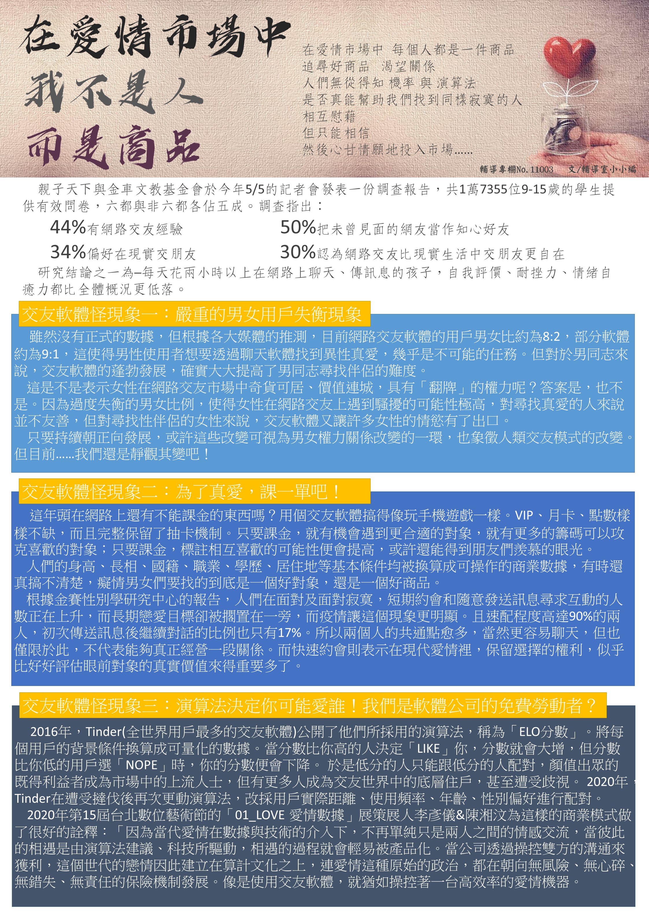 11月號性平主題─在愛情市場中,我不是人,而是商品